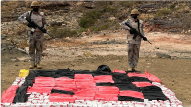 دوريات الأفواج الأمنية بمنطقة جازان تقبض على مخالف لنظام أمن الحدود لتهريبه 305 أقراص خاضعة لتنظيم التداول الطبي ومادتي الإمفيتامين والحشيش