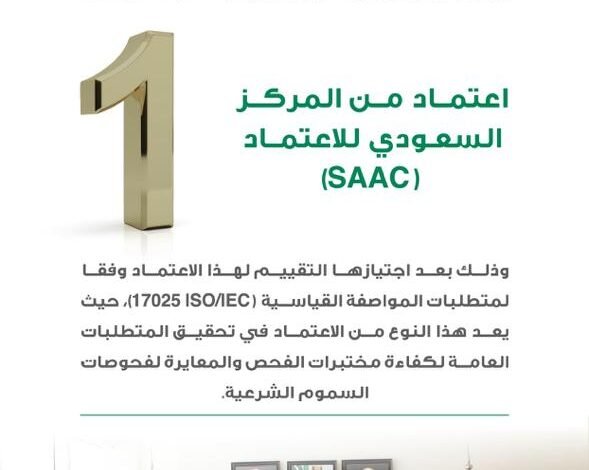 إدارة خدمات السموم الشرعية بالرياض تحصل على اعتماد من المركز السعودي للإعتماد SAAC”