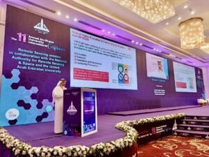 وقد استعرض الدكتور أحمد مراد في ورقته البحثية ممارسات البحث العلمي في جامعة الإمارات كنموذج في دعم أهداف التنمية المستدامة باستخدام أدوات تكنولوجية وبحثية تساعد في فهم عميق للتحديات ذات الصلة بالاستدامة والتغيرات المناخية.