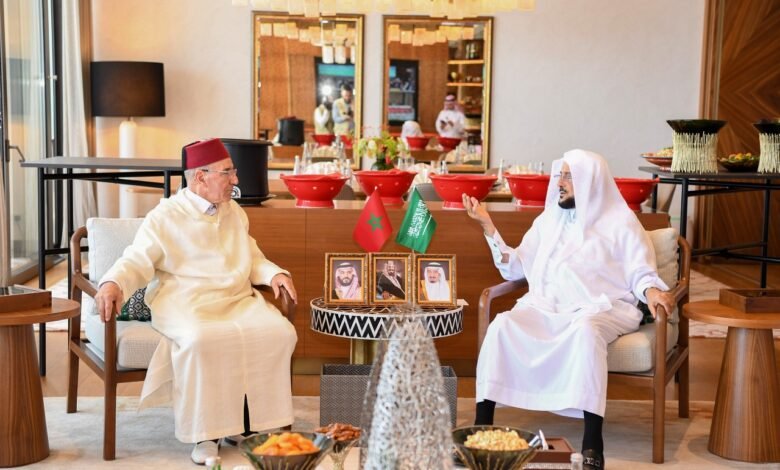 استقبل معالي وزير الشؤون الإسلامية والدعوة والإرشاد الشيخ الدكتور عبداللطيف بن عبدالعزيز آل الشيخ، في مقر إقامته بالعاصمة الرباط ، رئيس المجلس العلمي المحلي السيد محمد الصباني ، وعضو الأمانة العامة للمجلس العلمي الأعلى وإمام وخطيب مسجد الاحسان بالرباط السيد سعيد آيت اد ، وذلك على هامش زيارته الرسمية لمملكة المغرب تلبية للدعوة الموجهة من وزير الأوقاف والشؤون الإسلامية المغربية للمشاركة في الندوة المشتركة بعنوان ” الجهود العلمية المعاصرة لمدافعة الغلو وتحقيق الوسطية”.