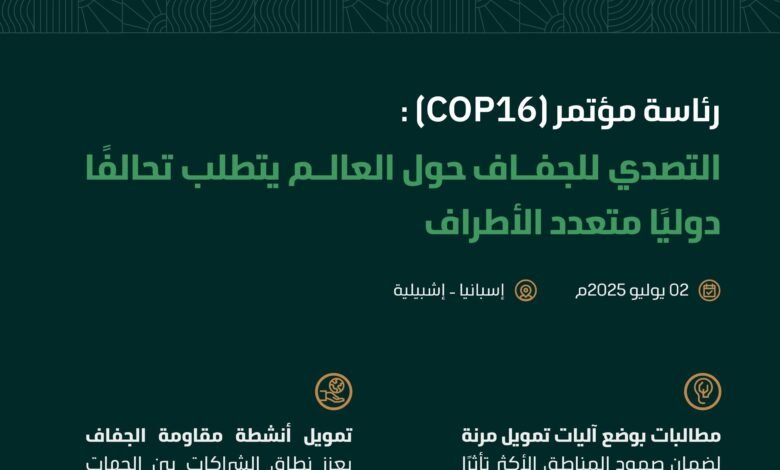 المملكة ترسم ملامح الحلول العالمية لأزمات الجفاف وتؤكد أهمية الابتكار والتعاون الدولي لمواجهة التحديات البيئية