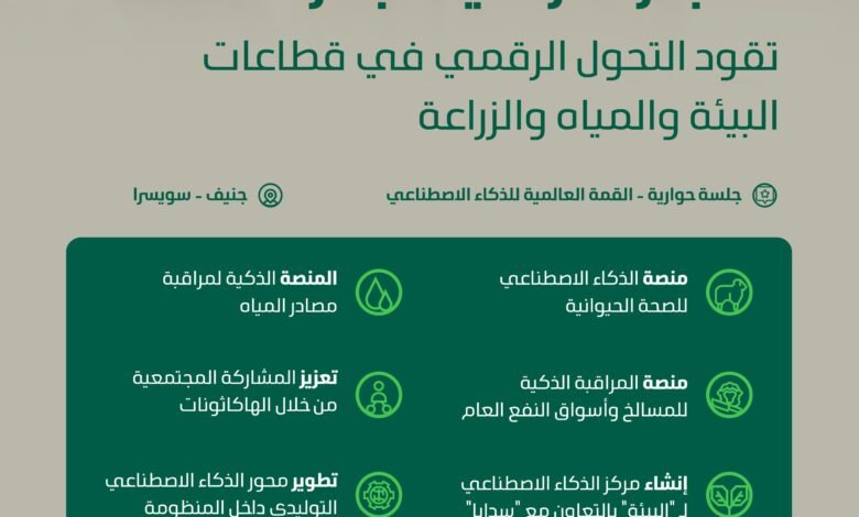 المملكة تستعرض للعالم 7 مبادرات رقمية مبتكرة ساهمت في تعزيز الصحة الحيوانية واستدامة المياه وسلامة الغذاء