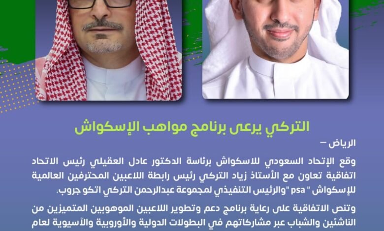 وتنص الاتفاقية على رعاية برنامج دعم لاعبي الإسكواش الموهوبين المتميزين وتطويرهم من الناشئين والشباب السعوديين عبر مشاركاتهم في البطولات الدولية والأوروبية والآسيوية لعام 2023م.