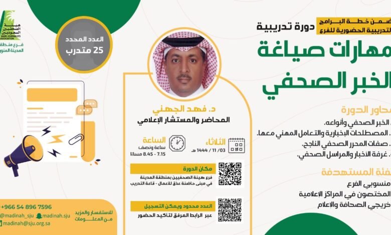 فرع هيئة الصحفيين السعوديين بمنطقة المدينة ينظم دورة في مهارات صياغة الخبر الصحفي