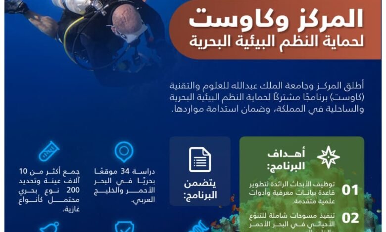 برنامج تعاون بين “كاوست” والمركز الوطني لتنمية الحياة الفطرية لحماية النظم البيئية البحرية وضمان استدامة الاقتصاد البحري