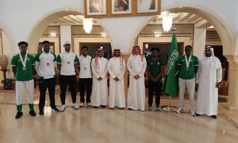 والقى معالي السفير (الصقر) كلمة ترحيبية، أعرب فيها عن سعادته بحضور الوفد السعودي، مشيدًا بما حققه أبناء وبنات المملكة من نتائج مشرفة في منافسات البطولة حتى الآن، مؤكدًا أن هذه الإنجازات تعكس حرص المملكة على دعم رياضة أم الألعاب عربيًا ودوليًا.