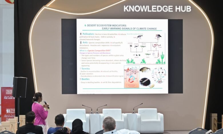 وفي إطار فعاليات منصة المعرفة، ألقت الدكتورة أنيثا ساجي، عالمة الحشرات الأولى وباحثة التنوع البيولوجي في هيئة البيئة – أبوظبي، محاضرةً ثريةً تناولت فيها عالم حشرات الصحراء، مسلّطة الضوء على أهميتها الحيوية في النظام البيئي الصحراوي.