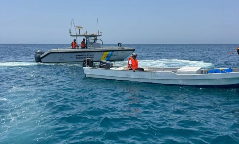 حرس الحدود بمنطقة مكة ينقذ مواطنين تعطلت واسطتهما البحرية في عرض البحر