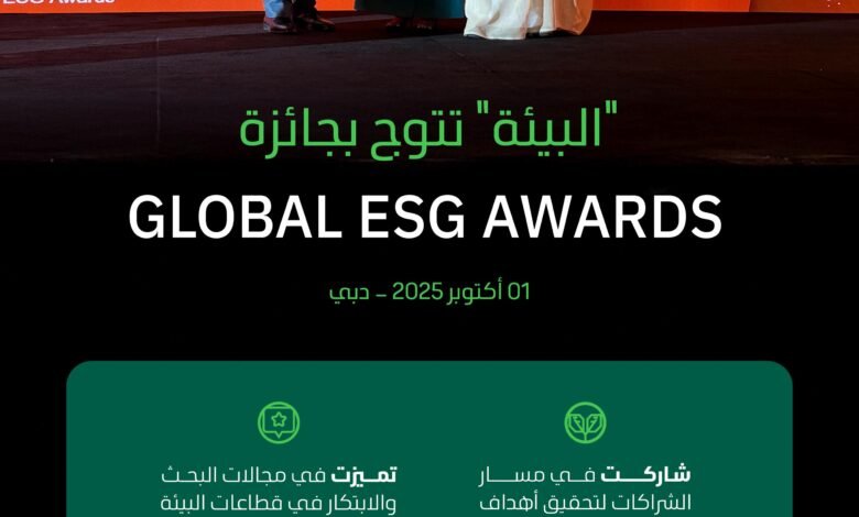 “البيئة” تتوج بجائزة GLOBAL ESG AWARDS لتميزها في مجال الابتكار لتحقيق الاستدامة