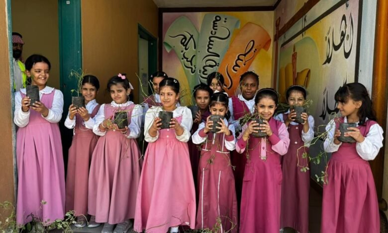 بيئة رنية تنفذ مبادرة تطوعية لتشجير ونظافة المدرسة الابتدائية السادسة بحي الملحة