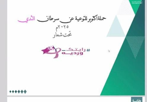 أقامت الإدارة العامة للتعليم بمحافظة الطائف اليوم الثلاثاء، لقاءً توعويًا عن بعد بعنوان “سرطان الثدي”، تحت شعار رايتك وردية؛بحضور الموجهات الصحيات في كافة مدارس التعليم، ويأتي تزامنًا مع شهر التوعية بسرطان الثدي 2025.