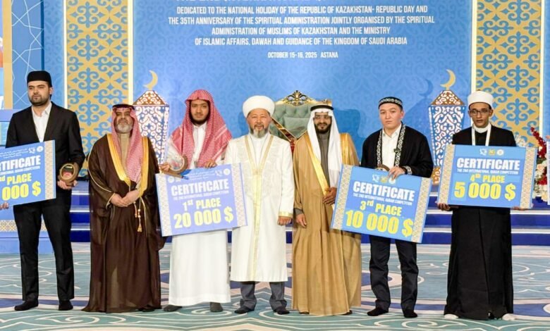 الشؤون الإسلامية تحقق إنجازًا دوليًا جديدًا بفوز مرشحها بالمركز الأول في المسابقة الدولية الثانية لتلاوة القرآن الكريم وحفظه في كازاخستان