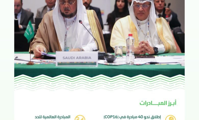 وأضاف، أن المملكة أحدثت تحولًا نوعيًا في تناول ومناقشة القضايا البيئية الدولية، وذلك من خلال استضافتها لمؤتمر الأطراف السادس عشر لاتفاقية الأمم المتحدة لمكافحة التصحر (COP16)، في العاصمة الرياض أواخر عام 2024م، والذي حظي بأكبر مشاركة دولية في هذه الاتفاقية منذ اعتمادها، كما تبنى المؤتمر العديد من القرارات المهمة، من خلال إعلان الرياض، وخرج بأكثر من ٣٥ قرار دولي؛ لتعزيز المحافظة على الأراضي الزراعية وأراضي المراعي، ودور المجتمعات المحلية، والبحث والتطوير والابتكار، وغيرها من المخرجات، بالإضافة إلى إطلاق نحو ٤٠ مبادرة ضمن اجندة الرياض، من أبرزها، مبادرة شراكة الرياض العالمية من أجل الصمود في مواجهة الجفاف، والتي تستهدف تعزيز الجهود الدولية لمكافحة الجفاف.