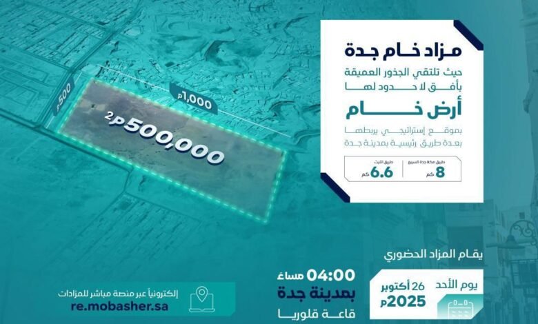أرض خام بمساحة 500 ألف م2 في حي الأجاويد بجدة تُعرض في مزاد “خام جدة” المدمج