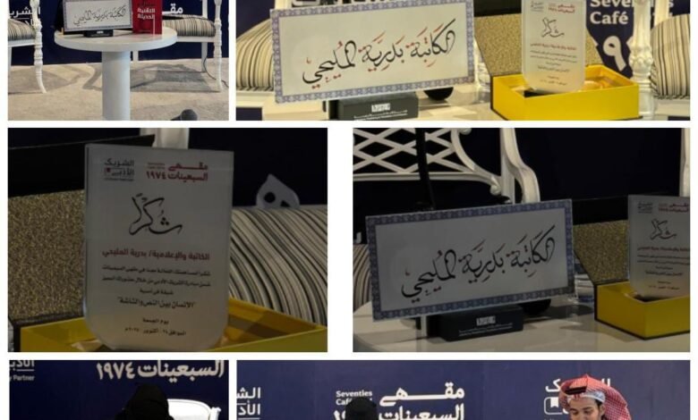 ضمن فعاليات الشريك الأدبي، وبالتعاون مع هيئة الأدب والنشر والترجمة، استضاف مقهى التسعينات بالرياض مساء الجمعة 2 جمادى الأولى 1447هـ، الكاتبة والصحفية بدرية المليحي في أمسية ثقافية بعنوان “الإنسان بين النص والشاشة”، تناولت خلالها أبرز سلبيات التقنية الحديثة وتأثيرها في العلاقات الأسرية والتواصل الإنساني.
