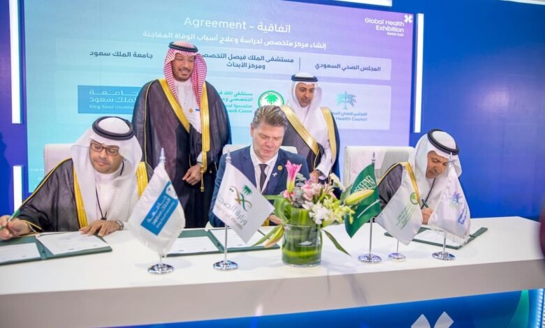 وفي خطوة نوعية لتعزيز التكامل في الصحة الوقائية، وقّع التخصصي اتفاقية تعاون مع جامعة الملك سعود والمجلس الصحي السعودي، لتعزيز العمل المشترك في مجالات الصحة العامة والوقاية من الأمراض ومكافحتها، والحد من الاصابات وتبادل الخبرات في المجالات العلمية والبحثية، والتعاون لإنشاء سجل وطني للوفاة المفاجئة.