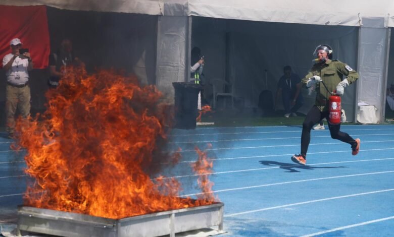منافسات قوية في سباق (400) متر تتابع ببطولة العالم لرياضة الإطفاء والإنقاذ