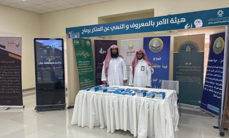 الأمر بالمعروف تفعّل محتوى برنامج “فاجتنبوه لعلكم تفلحون ” التوعوي والوقائي على لوحات الطرق ومعرض “حماية” بكلية التقنية برماح