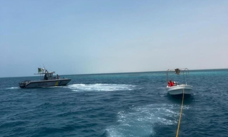 حرس الحدود بمنطقة مكة ينقذ مواطنًا تعطلت واسطته البحرية في عرض البحر