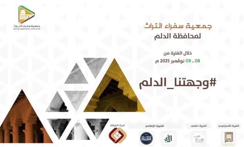 يقوم وفد من جمعية سفراء التراث يوم غد السبت بزياره رسمية إلى محافظه الدلم ، وذلك بهدف التعريف بتاريخ هذه المحافظه وتراثها الأصيل ، بدعم من وزارة الثقافة وهيئة التراث ، ودعما لرؤية المملكة ٢٠٣٠ في تعريف جميع فئات المجتمع بتاريخ كل المناطق في مملكتنا الغالية .