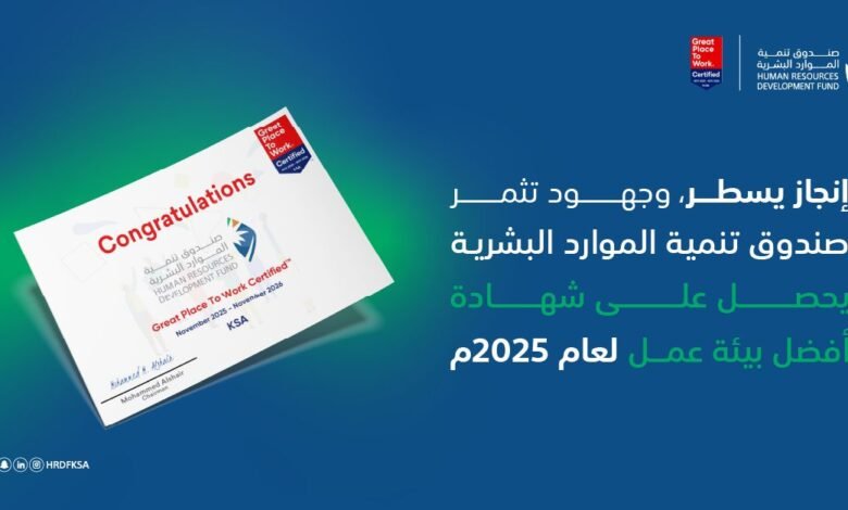 صندوق تنمية الموارد البشرية يتوّج بشهادة أفضل بيئة عمل لعام 2025م