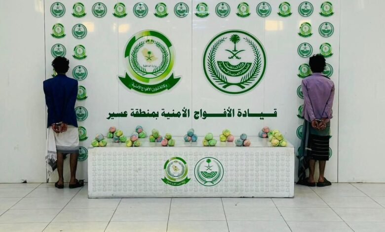 دوريات الأفواج الأمنية بمنطقة عسير تقبض على شخصين لترويجهما 7 كلجم من القات المخدر