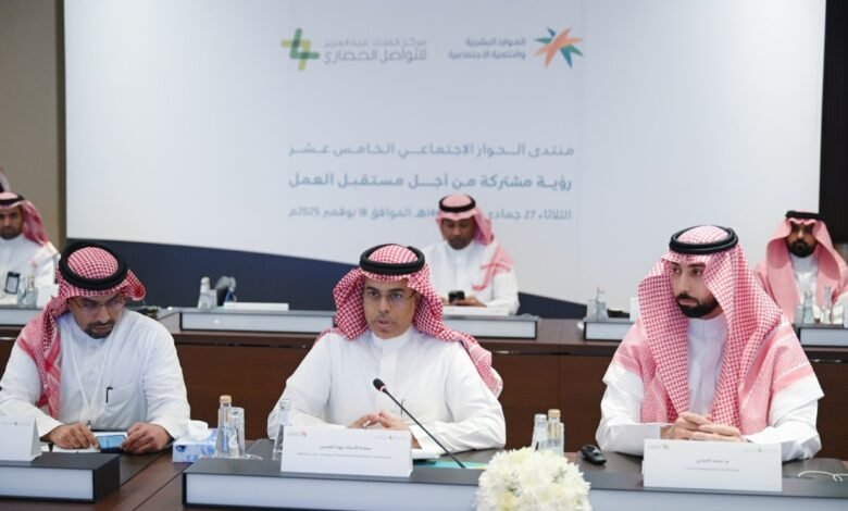 عقدت وزارة الموارد البشرية والتنمية الاجتماعية، بالتعاون مع مركز الملك عبد العزيز للتواصل الحضاري، خامس ورش العمل التحضيرية لمنتدى الحوار الاجتماعي الخامس عشر لعام 2025م، بعنوان: “رؤية مشتركة من أجل مستقبل عمل”، وذلك بحضور سعادة وكيل الوزارة لسياسات سوق العمل الأستاذ مهند العيسى، ورئيس اللجنة الوطنية للجان العمالية المهندس ناصر الجريد، ورئيس اللجنة الوطنية لسوق العمل بالإنابة الأستاذ خالد الشنيبر، وبمشاركة وفود ممثلي أطراف الإنتاج الثلاثة.