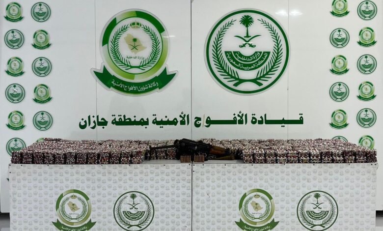 دوريات الأفواج الأمنية بمنطقة جازان تُحبط تهريب 214,650 قرصًا خاضعًا لتتظيم التداول الطبي