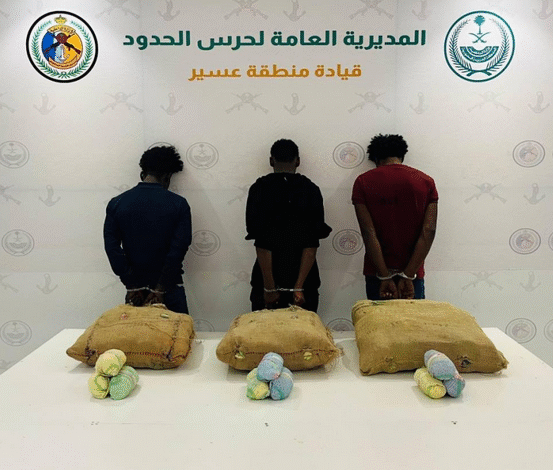 حرس الحدود بعسير يقبض على (3) مخالفين لتهريبهم (72) كيلوجرامًا من القات المخدر