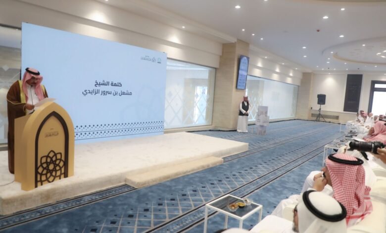 عقب ذلك ألقى الشيخ مشعل بن سرور الزايدي كلمة أشاد فيها بما تحقق من تعاون مبارك أسهم في إنشاء هذا الصرح الإسلامي المتكامل، مؤكدًا أن إقامة جامع داخل حد الحرم تُعد من أعظم أعمال الخير، ومعربًا عن شكره لوزارة الشؤون الإسلامية على ما قدمته من دعم وتسهيل، ومثمنًا الجهود التي بُذلت من المتبرعين حتى ظهر الجامع بهذه الصورة المشرّفة.