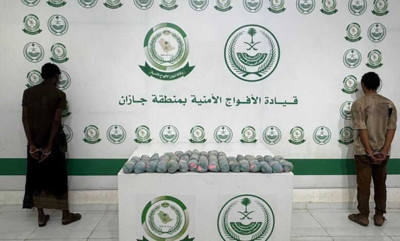 دوريات الأفواج الأمنية بمنطقة جازان تقبض على مخالفَيْن لنظام أمن الحدود لتهريبهما12كلجم من القات المخدر