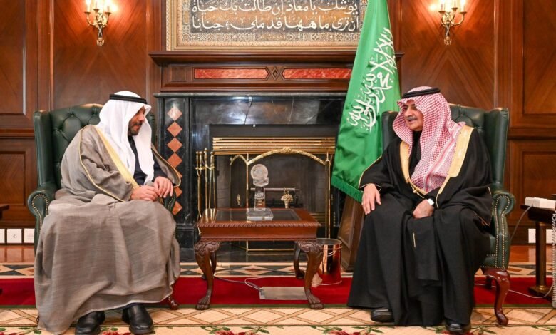 وفي بداية الاستقبال رحب سموه بالشيخ صباح ناصر صباح الأحمد الصباح والوفد المرافق له، متمنيًا لهم طيب الإقامة بالمنطقة، وجرى خلال الاستقبال تبادل الأحاديث الودية، واستعراض العلاقات الثنائية والأخوية التي تجمع البلدين والشعبين الشقيقين، إلى جانب بحث عدد من الموضوعات ذات الاهتمام المشترك.