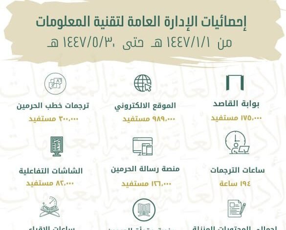 الرئاسة: أكثر من 1.7 مليون مستفيد من الخدمات الرقمية بالحرمين منذ مطلع 1447