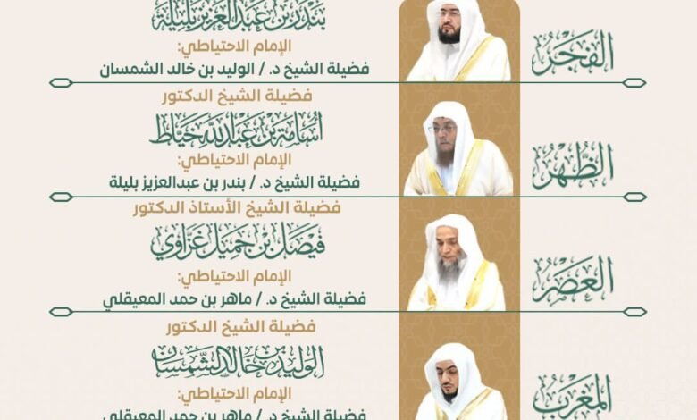 وجاء جدول أئمة المسجد الحرام على النحو الآتي: