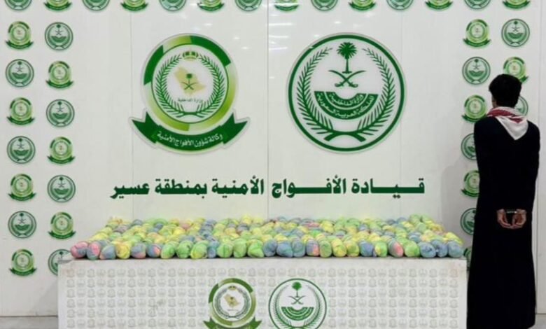 دوريات الأفواج الأمنية بمنطقة عسير تقبض على شخص لترويجه 31 كلجم من القات المخدر
