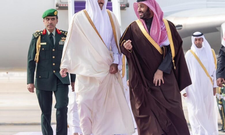 ولي العهد يستقبل أمير قطر لدى وصوله الرياض