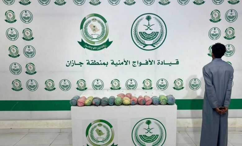 دوريات الأفواج الأمنية بمنطقة جازان تقبض على شخص لترويجه 11كلجم من القات المخدر
