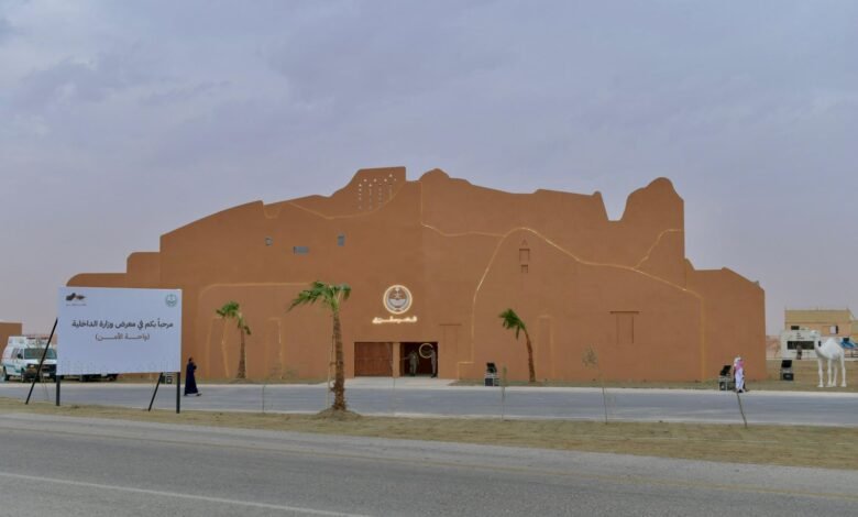 تجسد وزارة الداخلية حضور الإرث الوطني من خلال مجسم “قصر سلوى” المصمم على طراز العمارة النجدية القديمة، حيث يظهر المبنى بواجهة تحمل شعار الوزارة وإضاءات تعكس التفاصيل التراثية للموقع، في صورة تربط الماضي التأسيسي بالدور الأمني الراسخ في الحاضر.