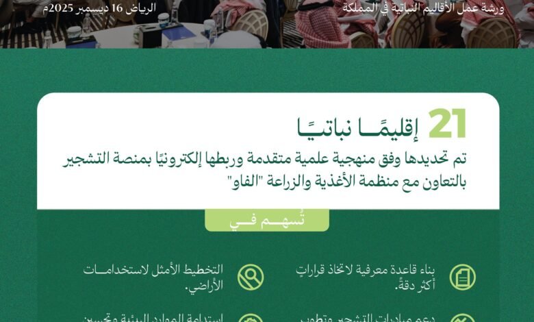 “البرنامج الوطني للتشجير”: تحديد 21 إقليمًا نباتيًا وربطها بمنصة التشجير لرسم ملامح مستقبل المملكة البيئي وإبراز تنوعها الطبيعي
