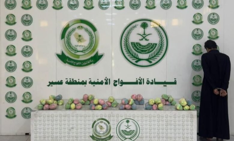 دوريات الأفواج الأمنية بمنطقة عسير تقبض على شخص لترويجه 10 كلجم من القات المخدر