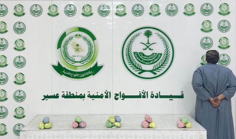 دوريات الأفواج الأمنية بمنطقة عسير تقبض على شخص لترويجه 3 كلجم من القات المخدر
