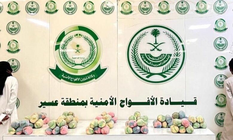 دوريات الأفواج الأمنية بمنطقة جازان تقبض على شخصين لترويجهما 13كلجم من القات المخدر