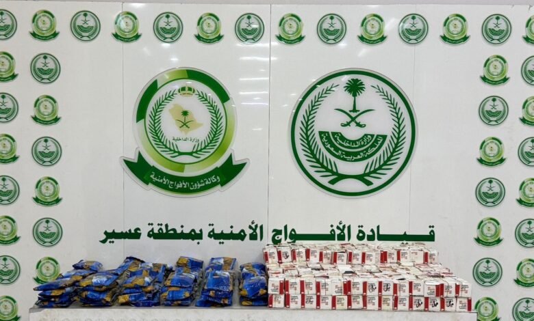 دوريات الأفواج الأمنية بعسير تُحبط تهريب 54,863 قرص خاضع للتداول الطبي و 88 كلجم من الحشيش المخدر