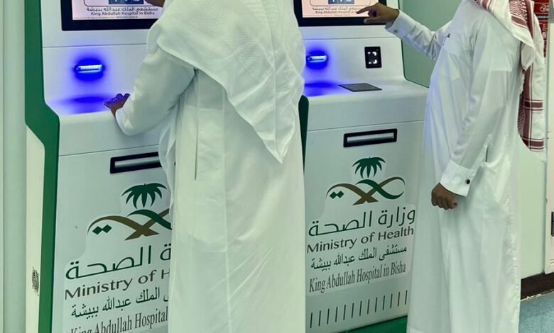 دشنت صحة بيشة ممثلة بمستشفى الملك عبدالله ببيشة جهاز الخدمات الذاتية الإلكترونية الفورية للمراجعين.