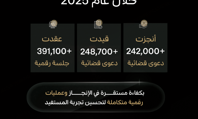 وأوضح التقرير ارتفاعًا عاليًا في معدلات الأعمال بمتوسط 70%، مما يؤكد رفع كفاءة إجراءات التقاضي وتحسين تجربة المستفيد، مُشيرًا إلى أن عام 2024 شهد إنجاز 168,016 دعوى قضائية، وتقييد 179,371 دعوى، إضافةً إلى عقد 281,600 جلسة قضائية، وهو فارق غير مسبوق يعكس استمرارية العمل على تحسين مؤشرات الأداء وتحليل البيانات القضائية والاستفادة منها في دعم صناعة القرار.