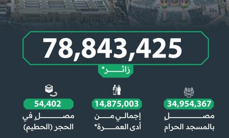 حيث بلغ عدد المعتمرين من خارج المملكة أكثر من مليونين معتمر