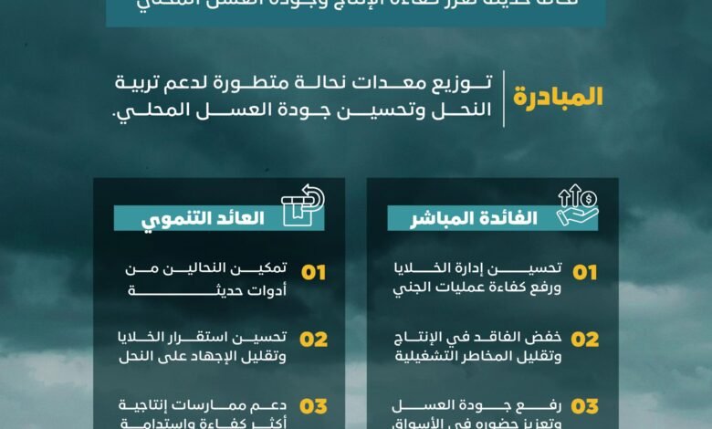 أطلق برنامج التنمية الريفية الزراعية المستدامة “ريف السعودية”، مشروعًا تنمويًا لتوفير أدوات ومعدات نحالة حديثة للنحالين السعوديين، بما يُسهم في تحقيق نقلة نوعية في قطاع تربية النحل، من خلال رفع كفاءة الإنتاج وجودة العسل، وتعزيز تبنّي التقنيات الحديثة، ودعم التحول من الأساليب التقليدية إلى ممارسات أكثر استدامة، تماشيًا مع مستهدفات رؤية السعودية 2030.