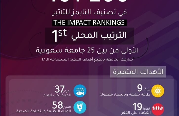 حققت جامعة الملك فيصل إنجازا نوعيا جديدا بتصنيفها الأولى محلياً من بين 25 جامعة سعودية و بفئة 101-200 عالمياً من بين 1591 جامعة في ( تصنيف التايمز العالمي للتأثير THE Impact Ranking ) والذي يقيس مساهمة الجامعات في تحقيق أهداف التنمية المستدامة .