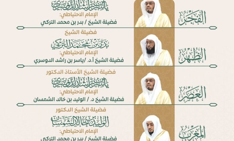 ويأتي إعتماد هذا الجدول في إطار تنظيم شؤون الإمامة بالمسجد الحرام والمسجد النبوي، بما يتيح للمصلين أداء عباداتهم في أجواء روحانية مفعمة بالطمأنينة، وبقيادة أئمةٍ من أهل العلم والخبرة.