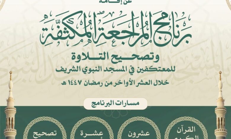 ويهدف البرنامج إلى تمكين المعتكفين من مراجعة محفوظهم من القرآن الكريم وتصحيح تلاوتهم وفق أحكام التجويد، بإشراف نخبة من المعلمين المتخصصين في تعليم القرآن الكريم، بما يسهم في تعزيز البيئة الإيمانية والعلمية داخل المسجد النبوي خلال موسم الاعتكاف.